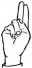 На ћирилици написано ПЕРИША РЖАНИЧАНИН састоји се из 16 слова [?]. Исписано ћириличном једноручном азбуком за глувонеме: